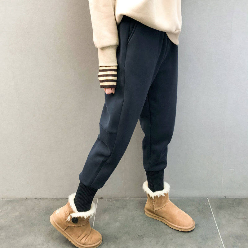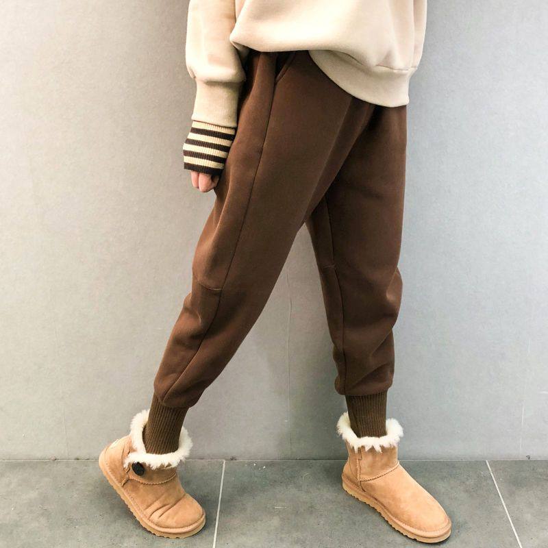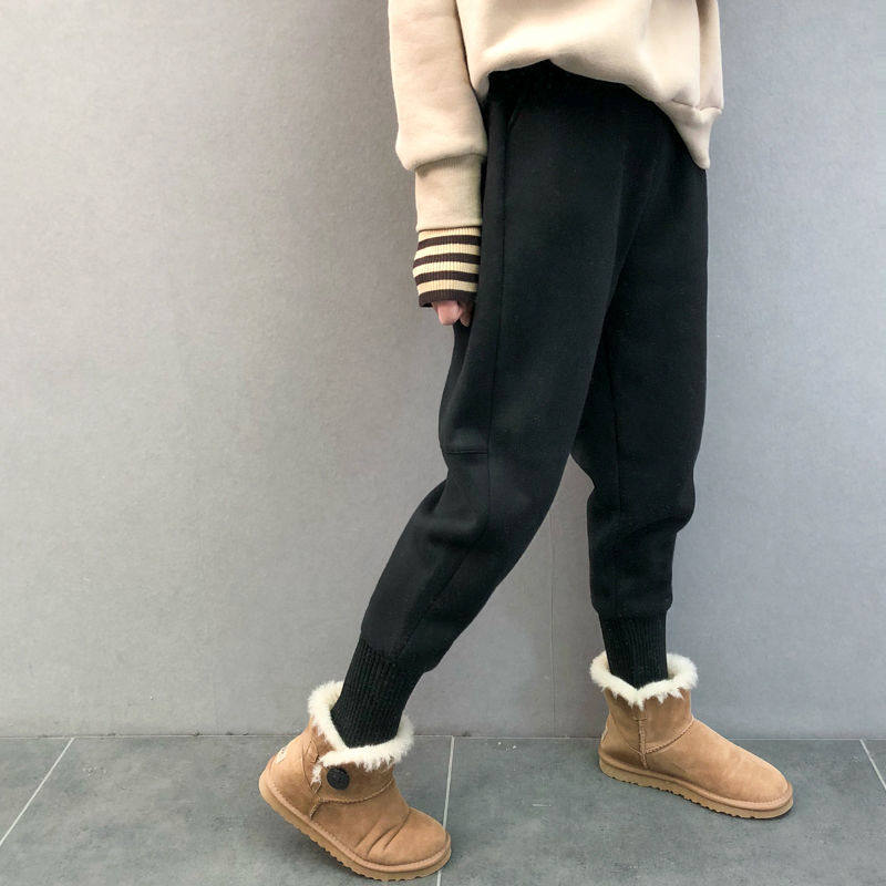 加绒加厚针织束脚卫裤女冬季松紧腰小脚垮裤宽松显瘦高腰休闲长裤