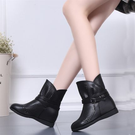 2024新款女靴子鞋春秋单靴马丁靴百搭平底内增高夏季女士镂空短靴