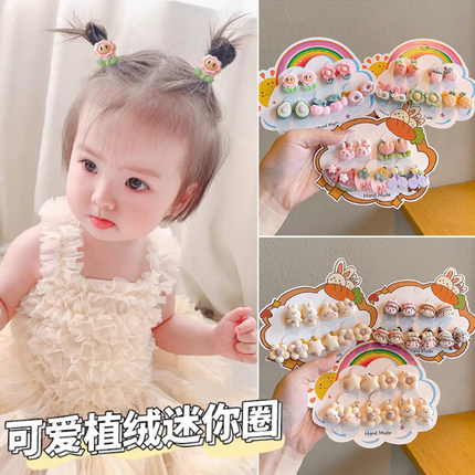 婴儿小号拇指发圈扎小啾啾发绳不伤发卡通花朵发圈宝宝发量少皮套