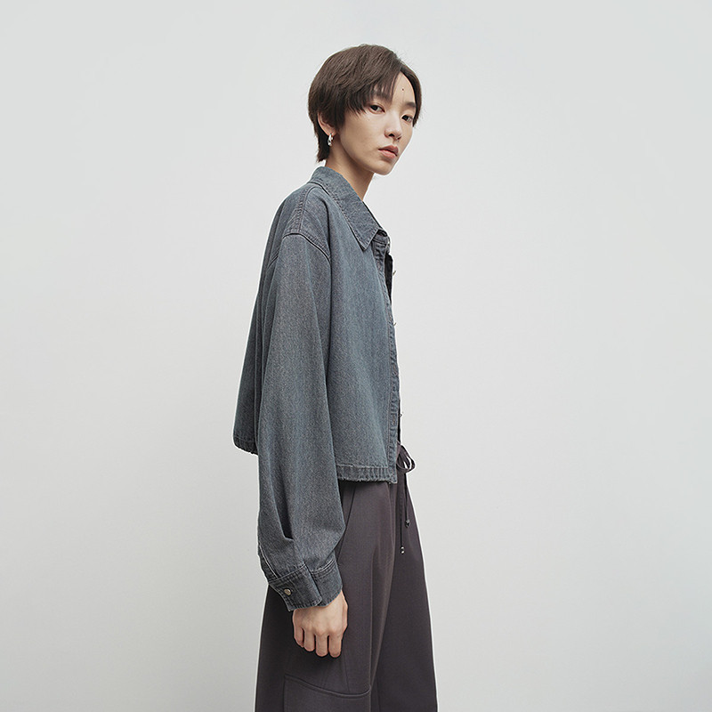 播商场同款水洗牛仔衬衫女25春新款显瘦短款休闲外套BDS1CD1417