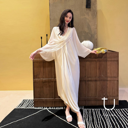 TU烟影流纱真丝飘带连衣裙26年春夏新款多穿法中长款桑蚕丝裙子