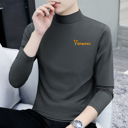 男士中领长袖T恤舒适印花秋衣内衣服纯棉修身体恤打底衫半高领T恤