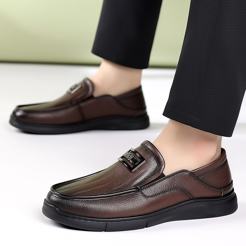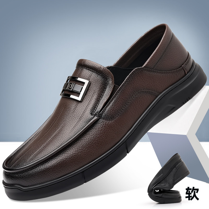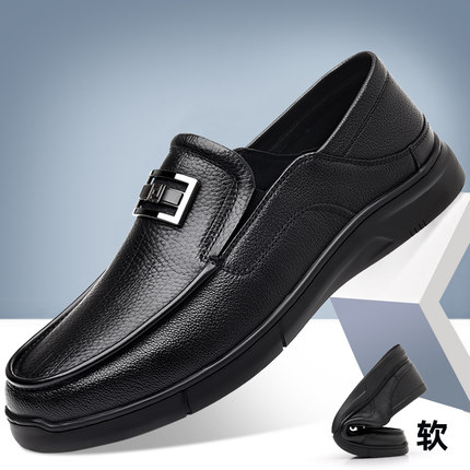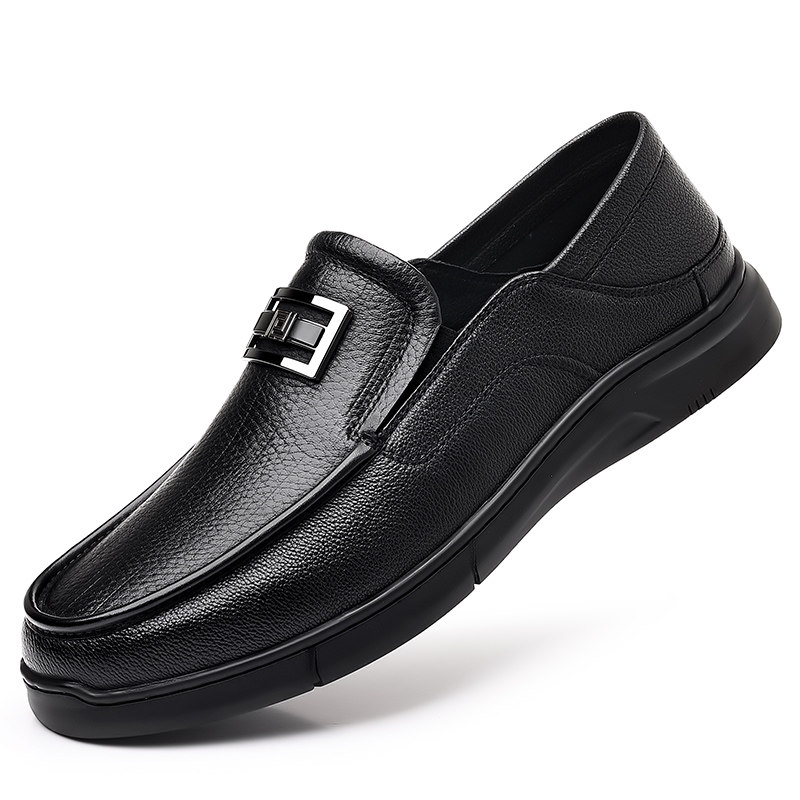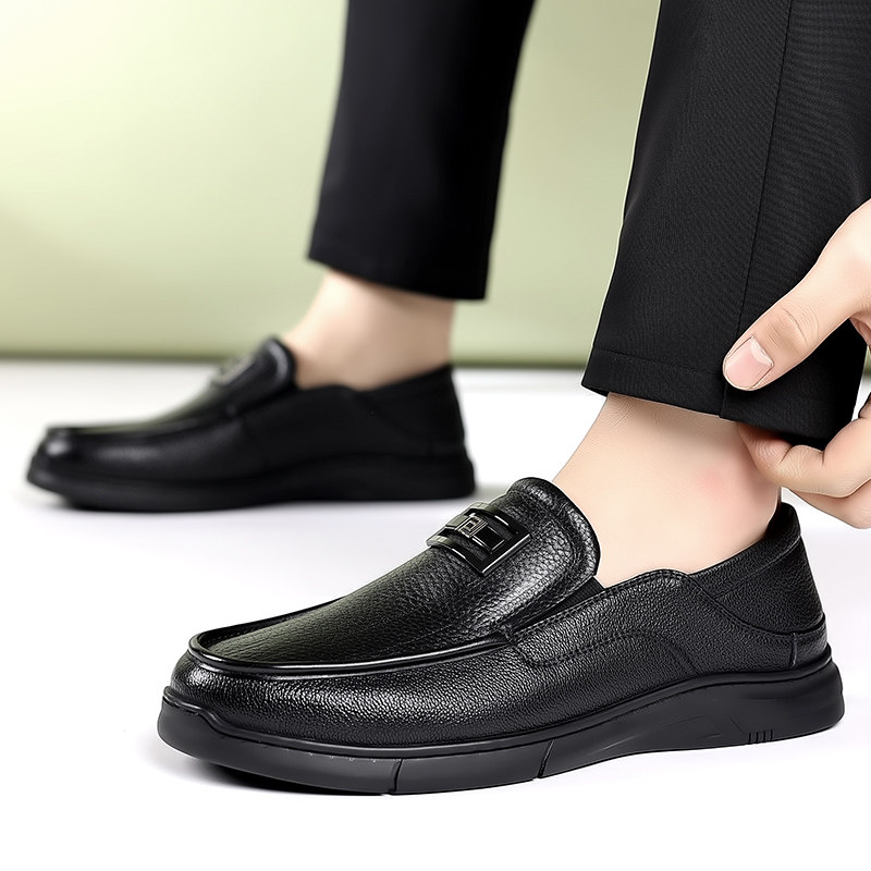 男鞋脚王KFT休闲皮鞋套脚懒人黑色工作鞋2025鞋小码软底鞋真皮鞋