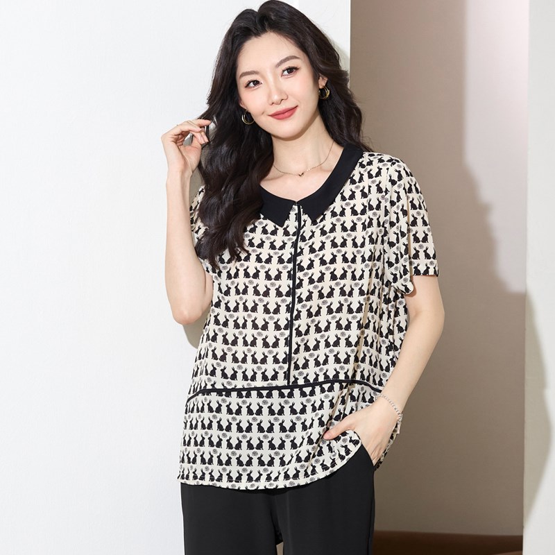 大码女装夏季新品胖妹妹时髦洋气雪纺上衣胖mm宽松显瘦短袖T恤衫