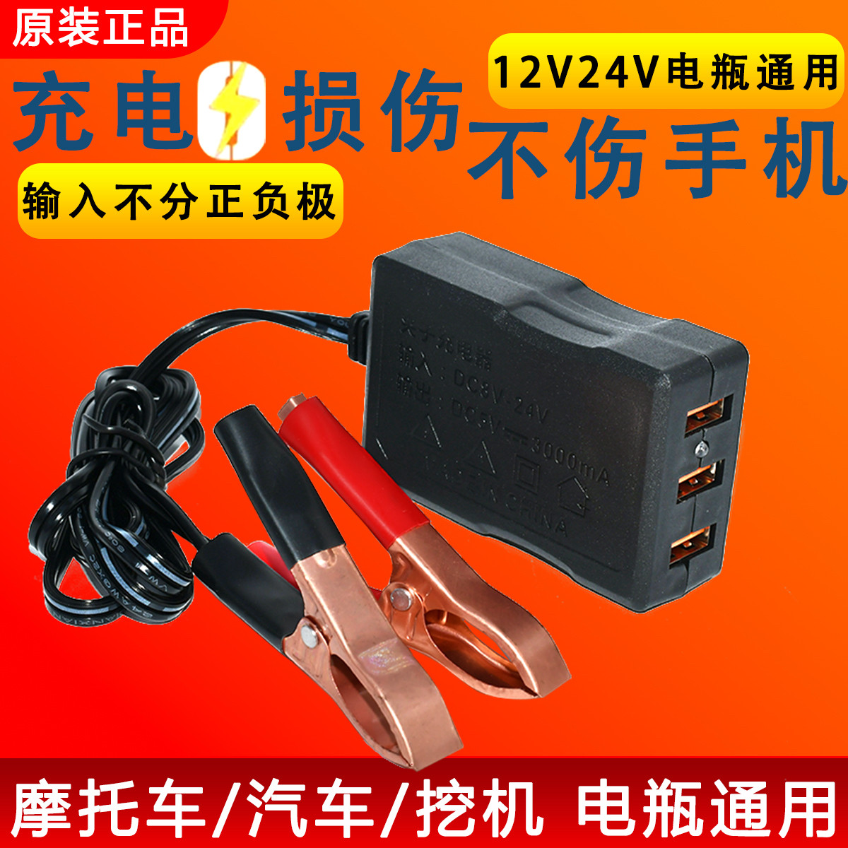 电瓶手机USB充电器12V24伏转换5V多功能通用型摩托车车载快充接头