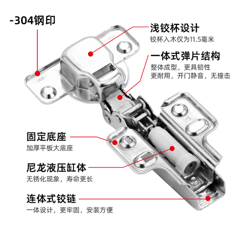 DTC东泰橱柜SUS 304不锈钢铰链衣柜阻尼缓冲合页门铰弹簧液压铰链