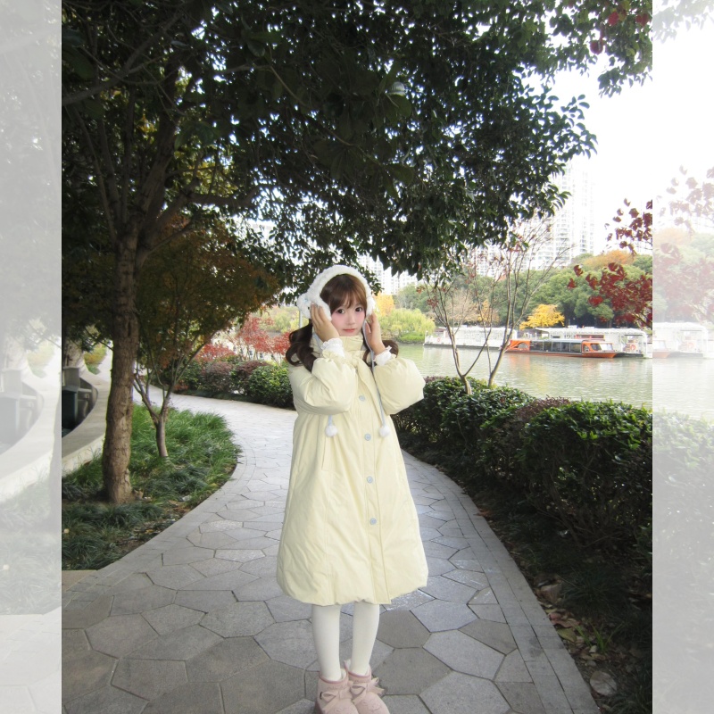 黄色连帽学院风羽绒棉服外套女冬季2025年新款设计感宽松加厚棉衣