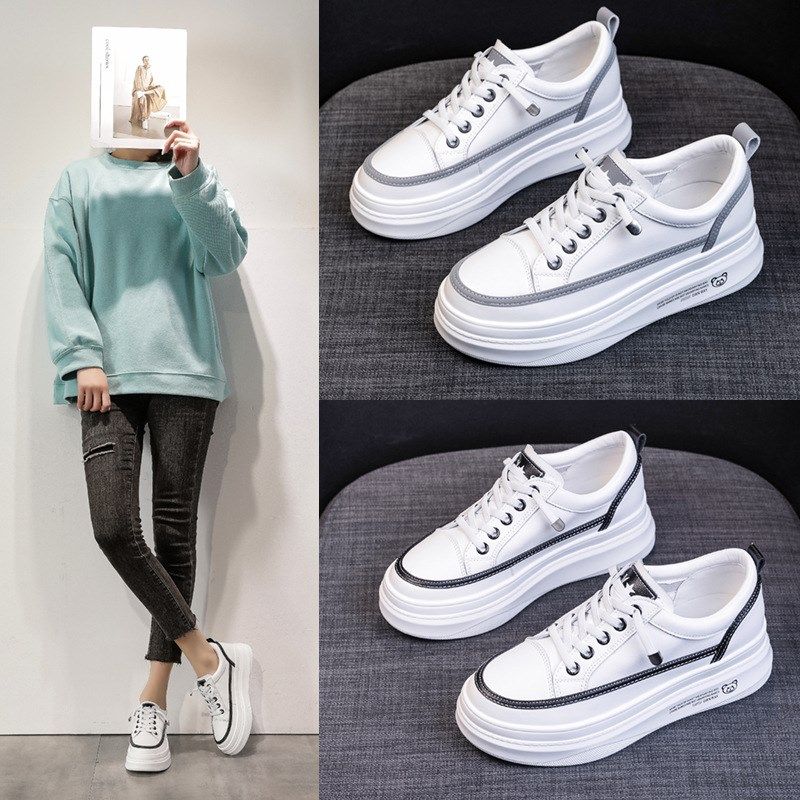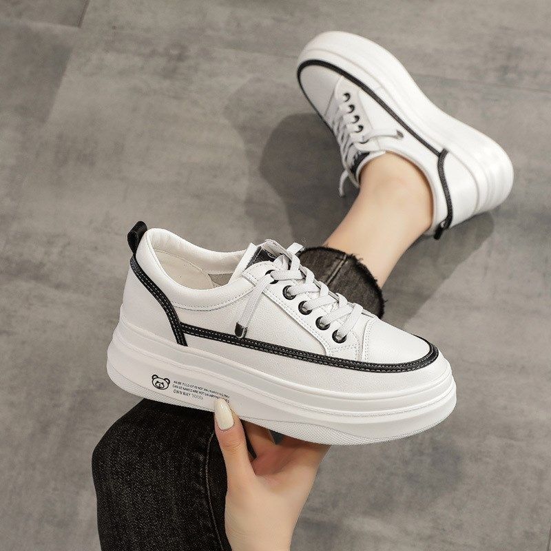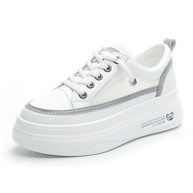 全牛皮内增高5CM网面小白鞋女厚底2025春夏百搭运动真皮透气单鞋