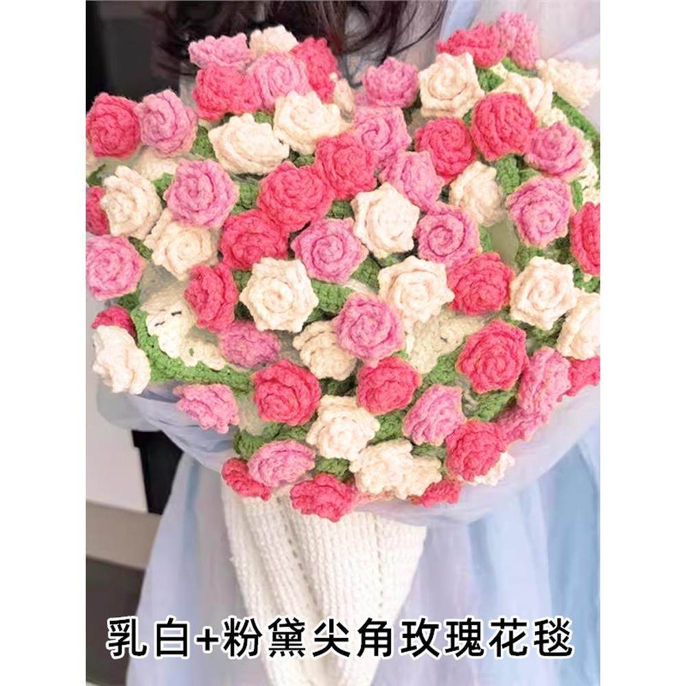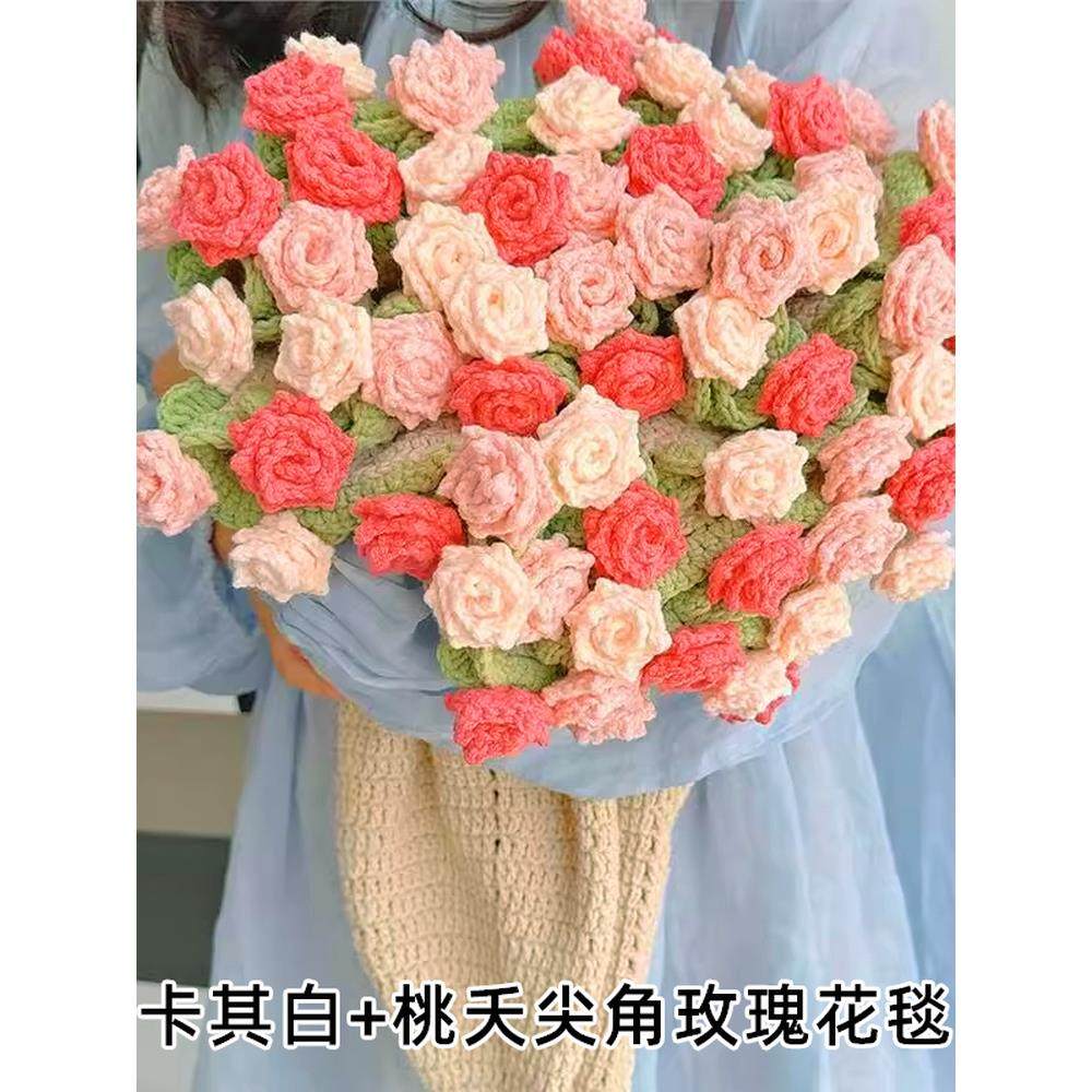 尖角玫瑰花束毯子自制钩织毛毯diy材料包手工编织渐变花毯送朋友