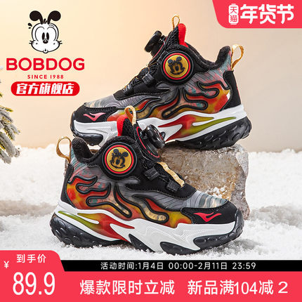 巴布豆童鞋男童加绒二棉鞋2025新款冬季男宝加绒保暖鞋儿童运动鞋