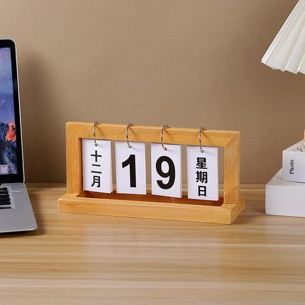 新款木质翻页日历摆件桌面中文台历创意家居玄关装饰餐桌拍照道具