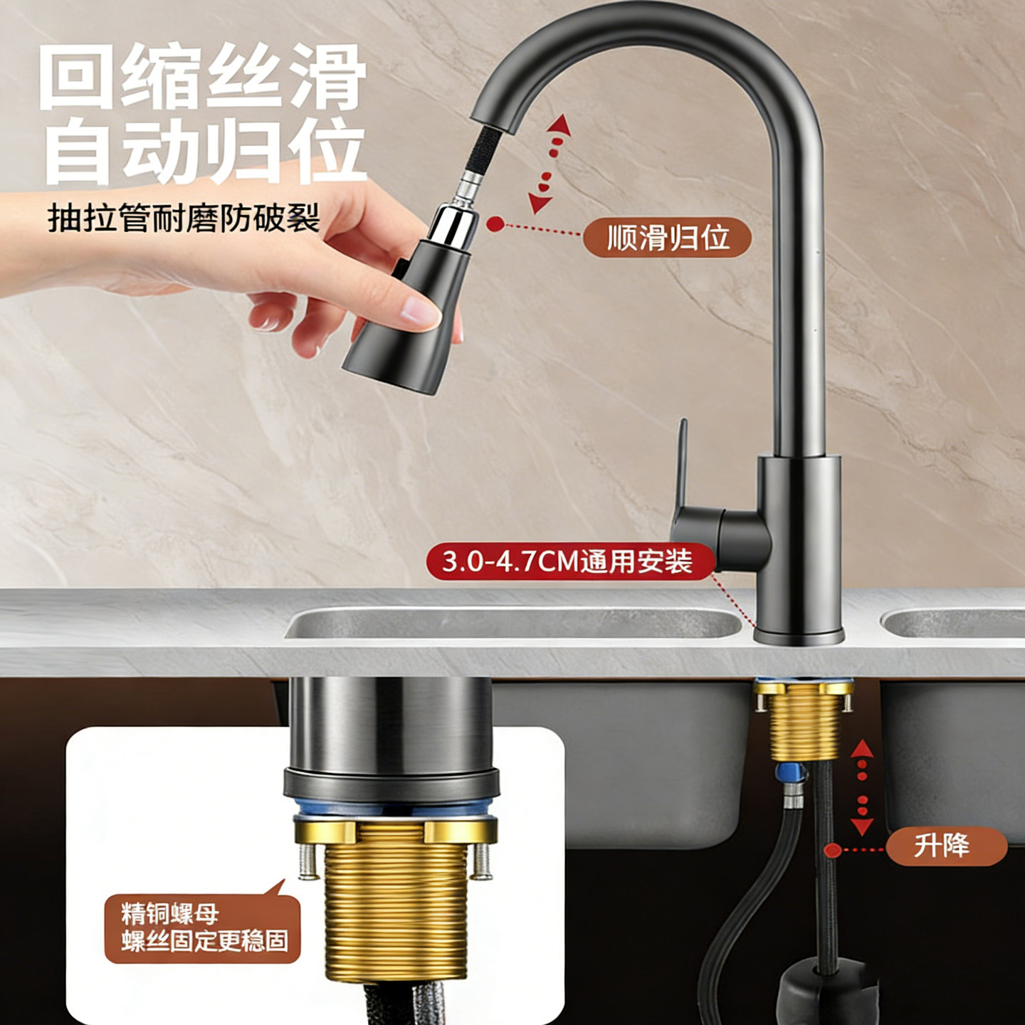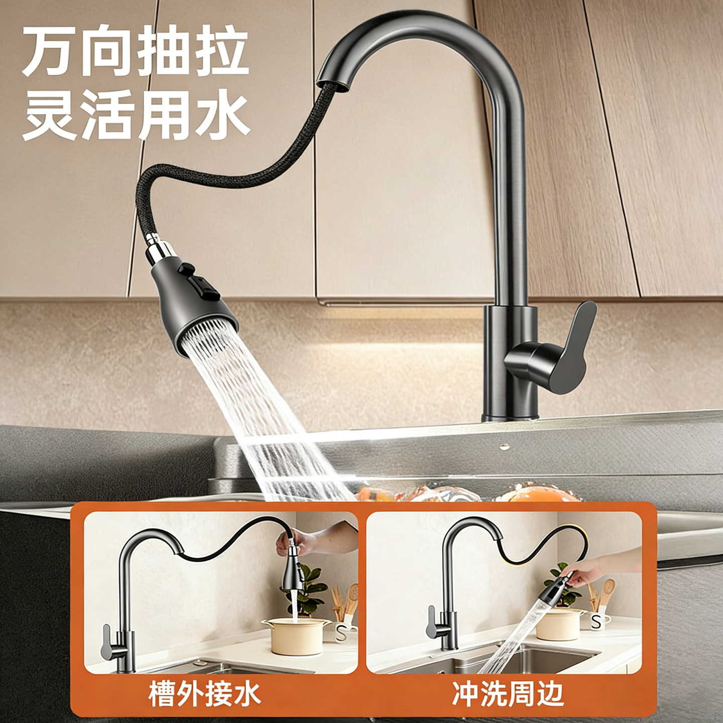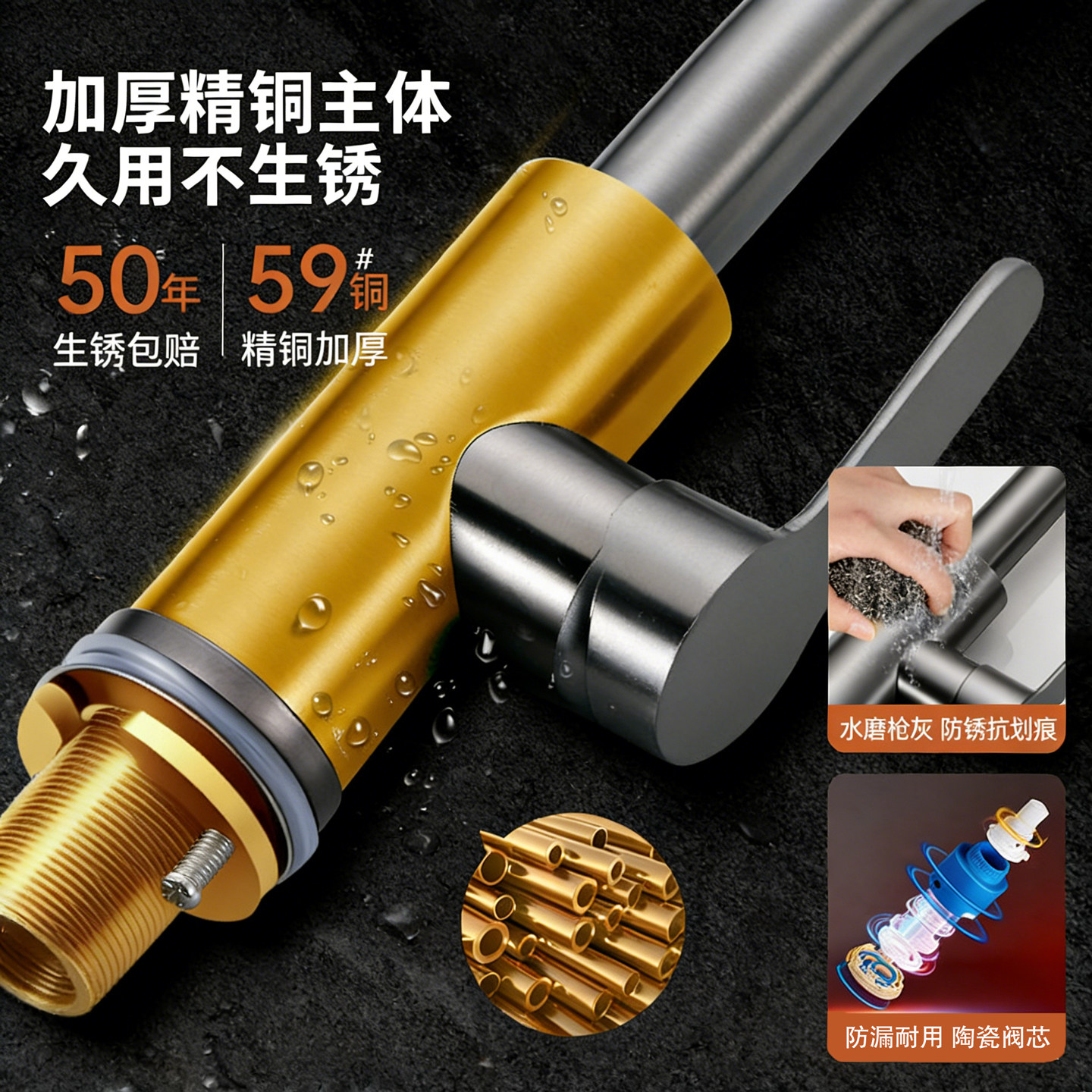 包安装厨房水龙头冷热两用水槽洗菜盆精铜单冷万向旋转增压防溅水