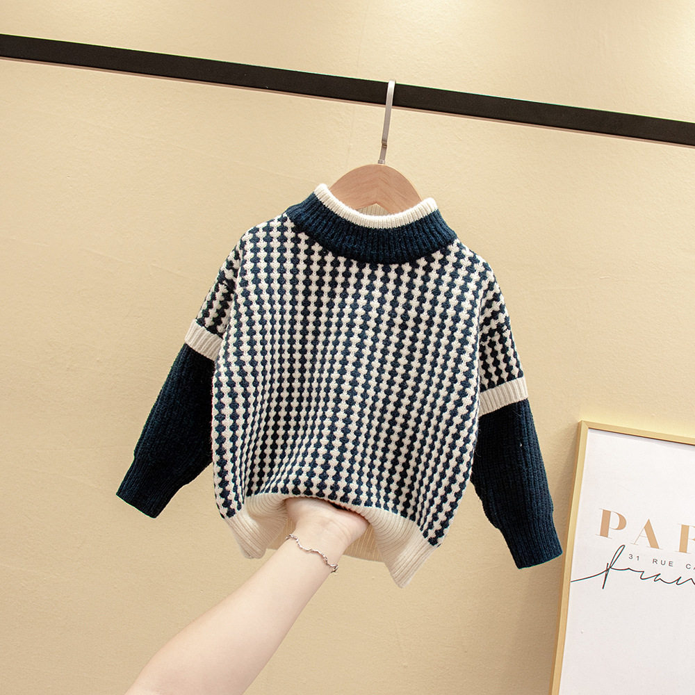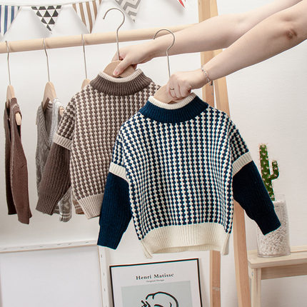 儿童毛衣加绒加厚中大童套头打底针织衫男童假两件宝宝保暖上衣