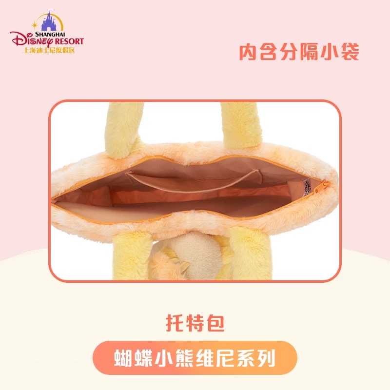 蝴蝶小熊维尼毛绒托特包单肩包 上海迪士尼