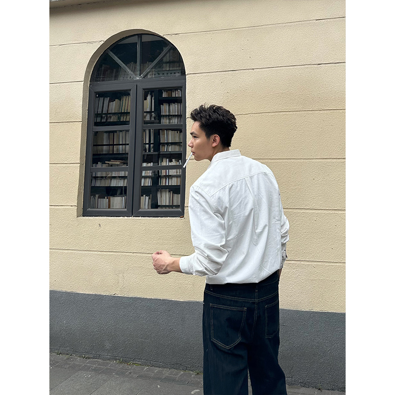 TBKL定制100%全棉长袖衬衫男士简约休闲透气春夏防晒纯色衬衣外套