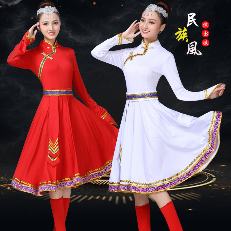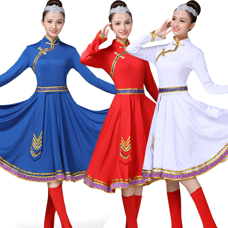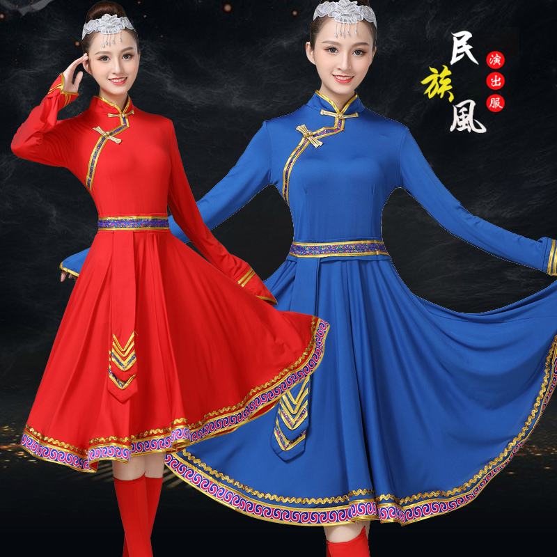 新款蒙古舞蹈演出服装蒙古袍蒙族舞练习裙大摆裙现代少数民族服装