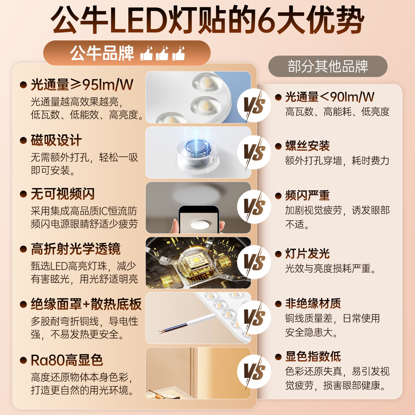 公牛led超亮吸顶灯灯芯新款光源改造灯盘护眼卧室灯方形替换灯板