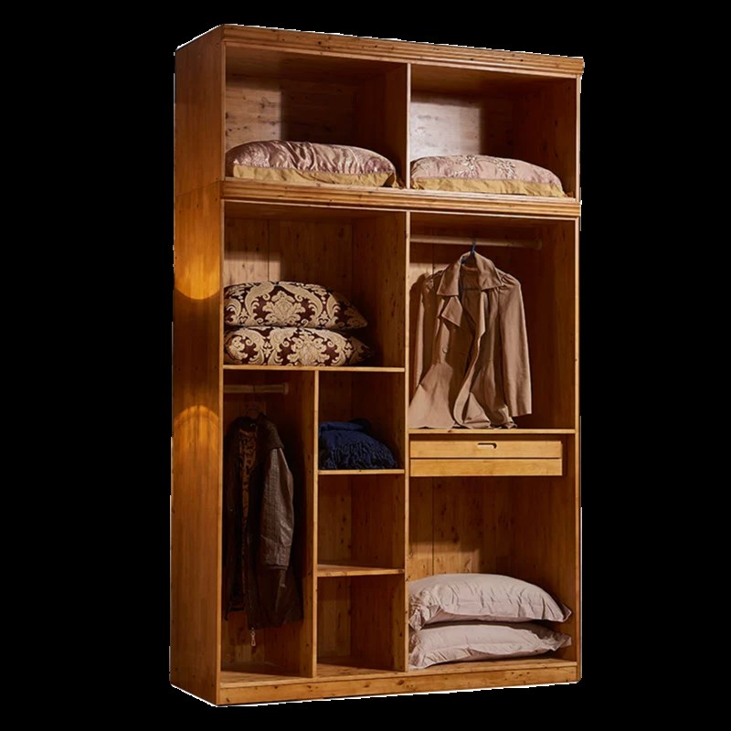 全实木柏木四门大衣柜带顶v柜现代中式平开门储物衣橱卧室家具组