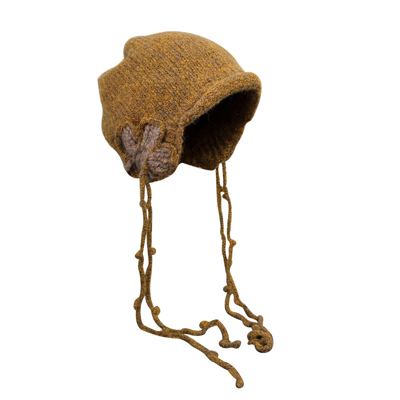2025新款韩系复古慵懒感手工钩花包头帽女秋冬保暖防寒护耳针织帽