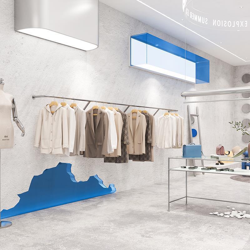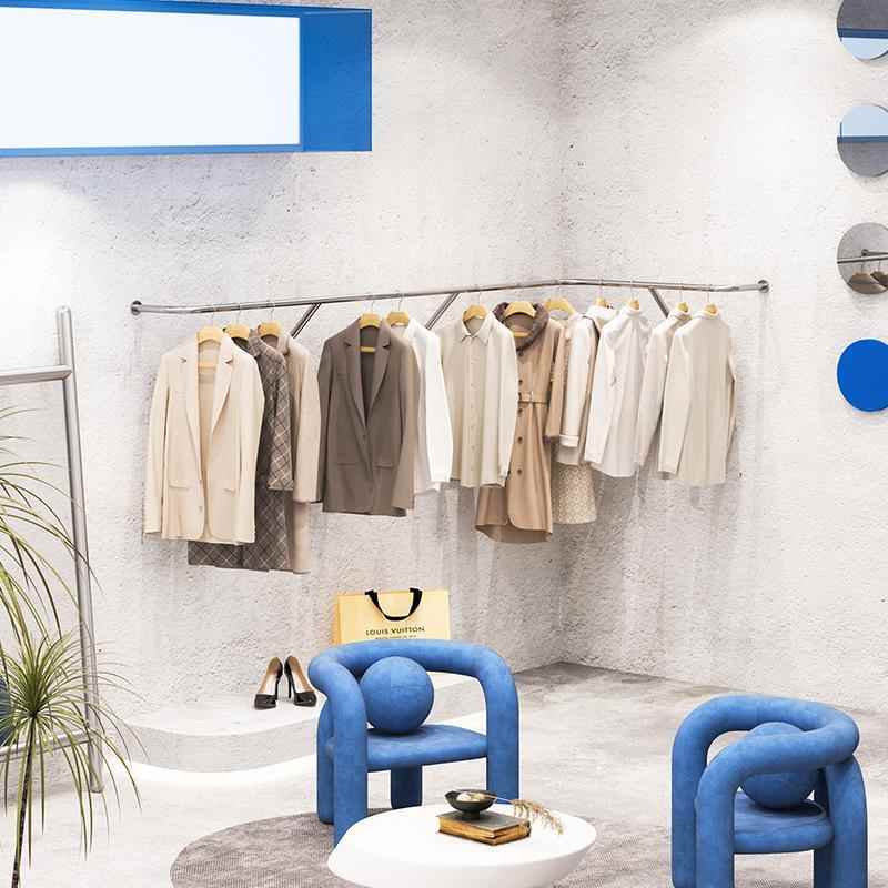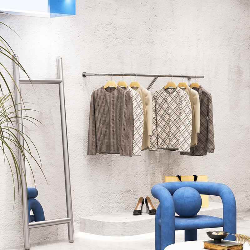服装店不锈钢上墙斜撑壁挂式展示架男女装店轻奢展示货架陈列道具