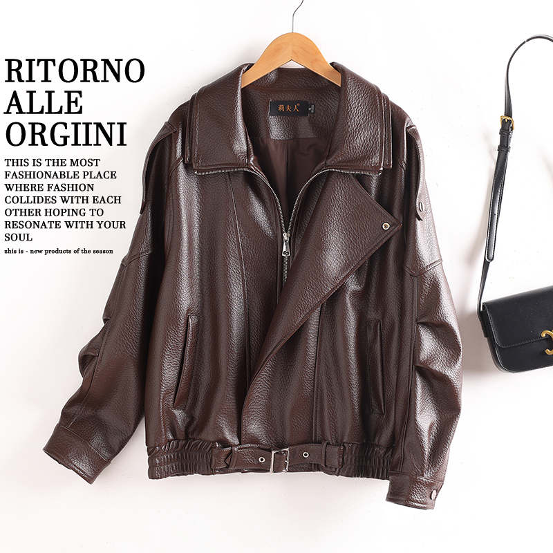 海宁真皮皮衣女新款宽松显瘦绵羊皮短款高级感小个子皮夹克外套