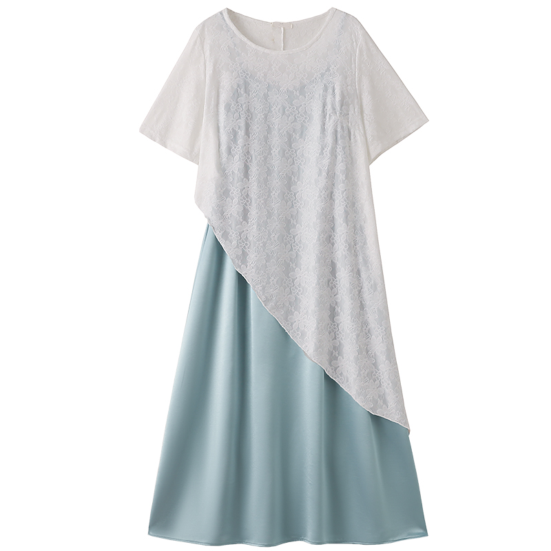 300斤胖莹大码女装2025夏高级感蕾丝提花罩衫吊带连衣裙薄款套装