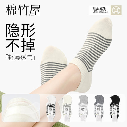 条纹船袜子女款美式风夏季薄款纯棉防滑不掉跟浅口隐形春秋季短袜