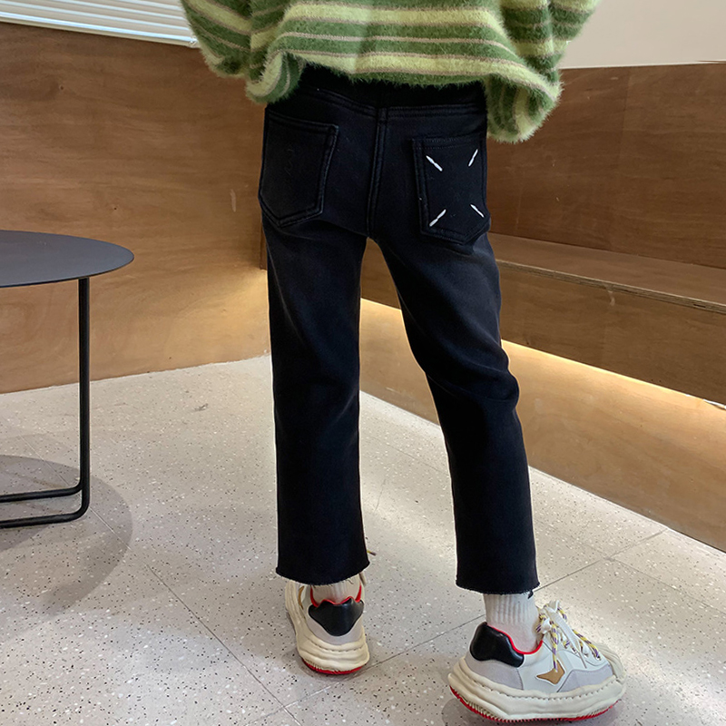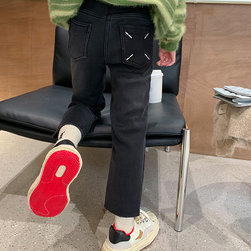 儿童烟管直筒牛仔裤2023新款冬装中大童加绒显瘦裤子女童裤子春秋