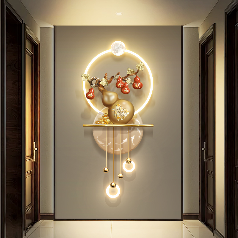 入户玄关5D立体葫芦装饰画过道走廊尽头新中式福禄壁画灯福字挂画