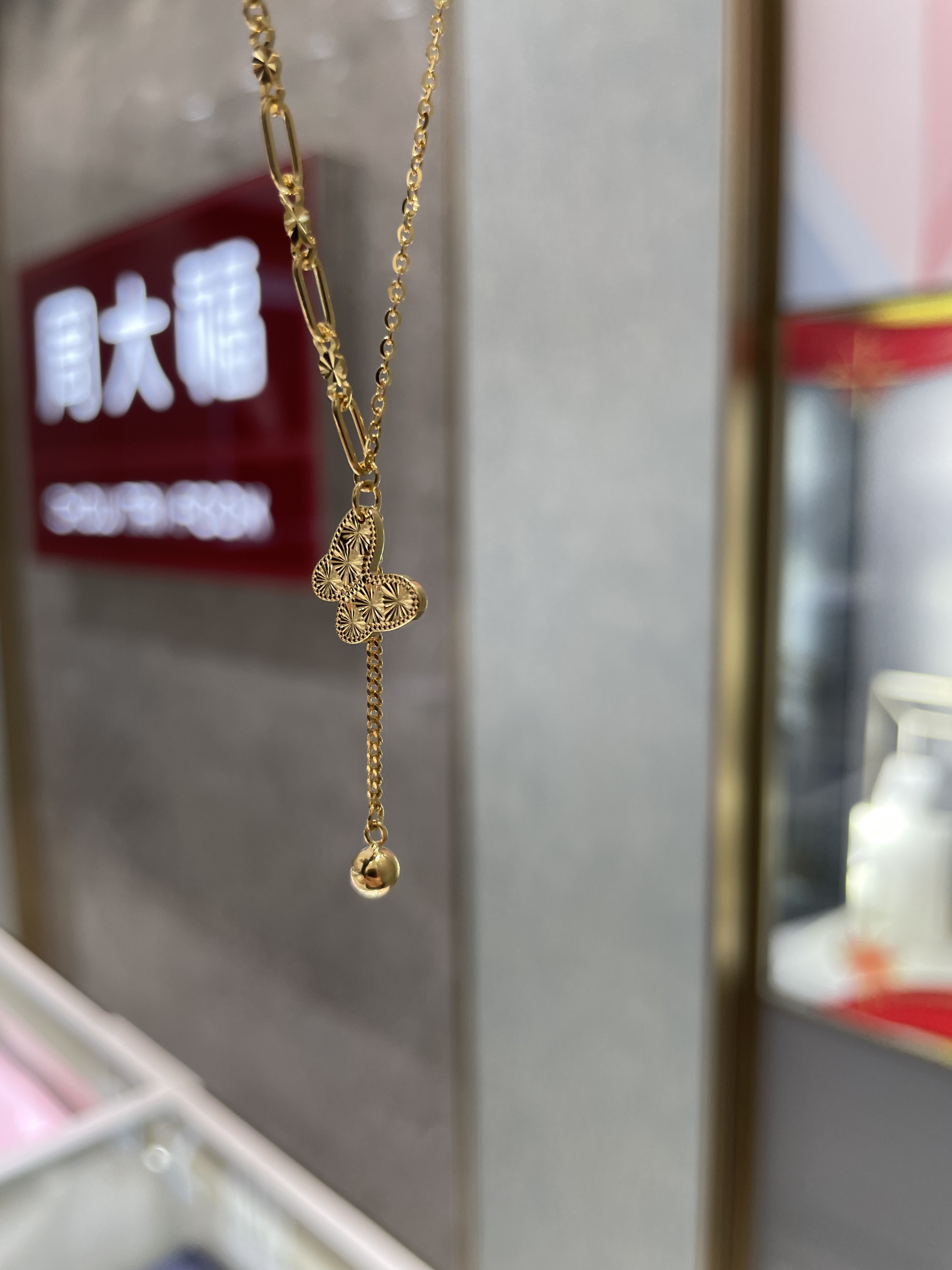 周大福代购 新款鱼鳞蝴蝶流苏小金珠足金黄金项链 克减80 F233101