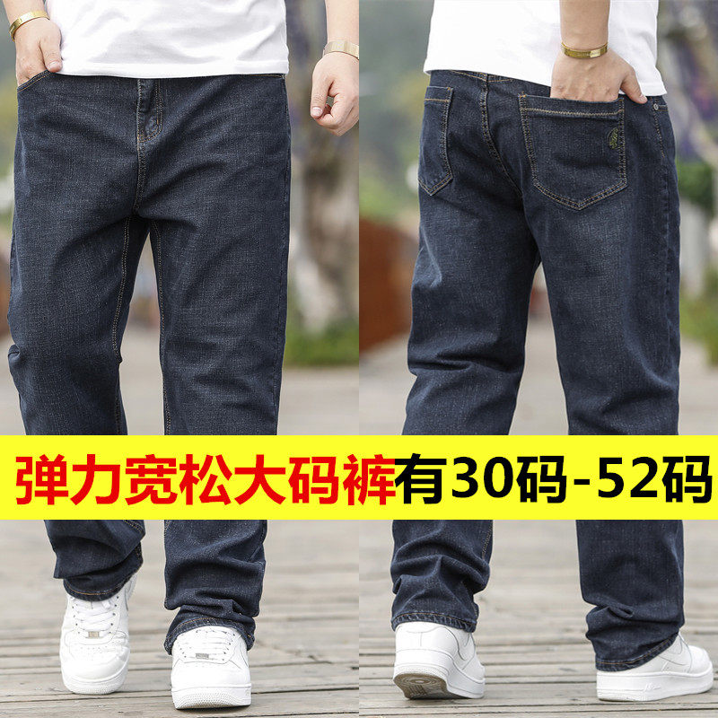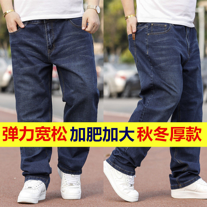 秋冬厚款胖子特大号牛仔裤男加肥加大码高腰弹力宽松肥佬休闲长裤