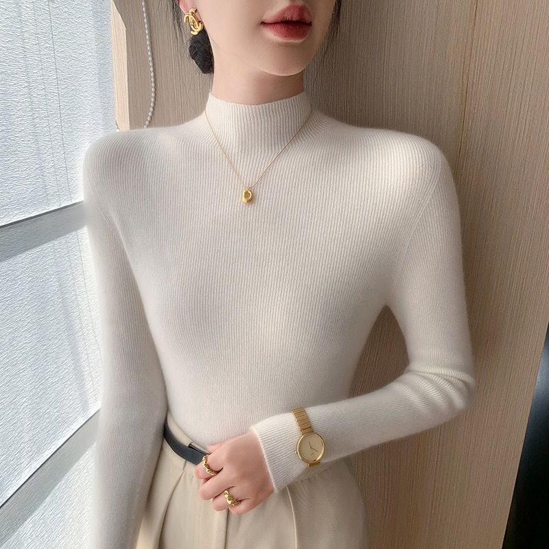 一线成衣无缝女半高领套头打底衫秋冬内搭毛衣修身羊毛针织衫
