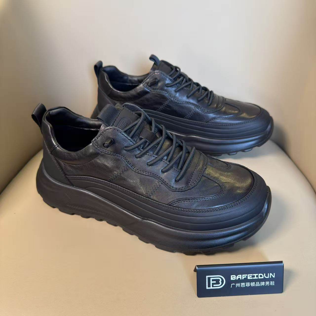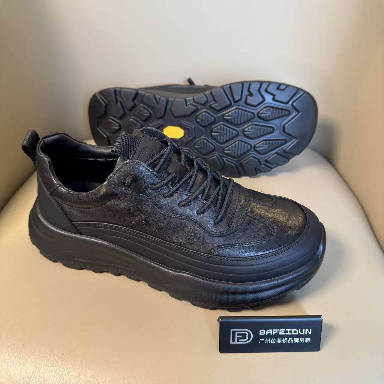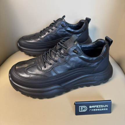 广州手工男鞋春季新款低帮单鞋厚度超轻一脚蹬休闲皮鞋运动9037