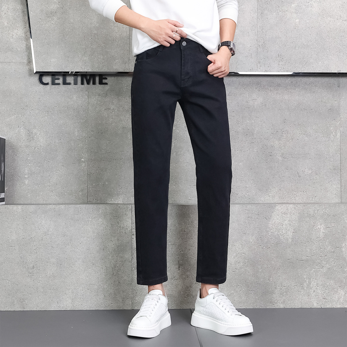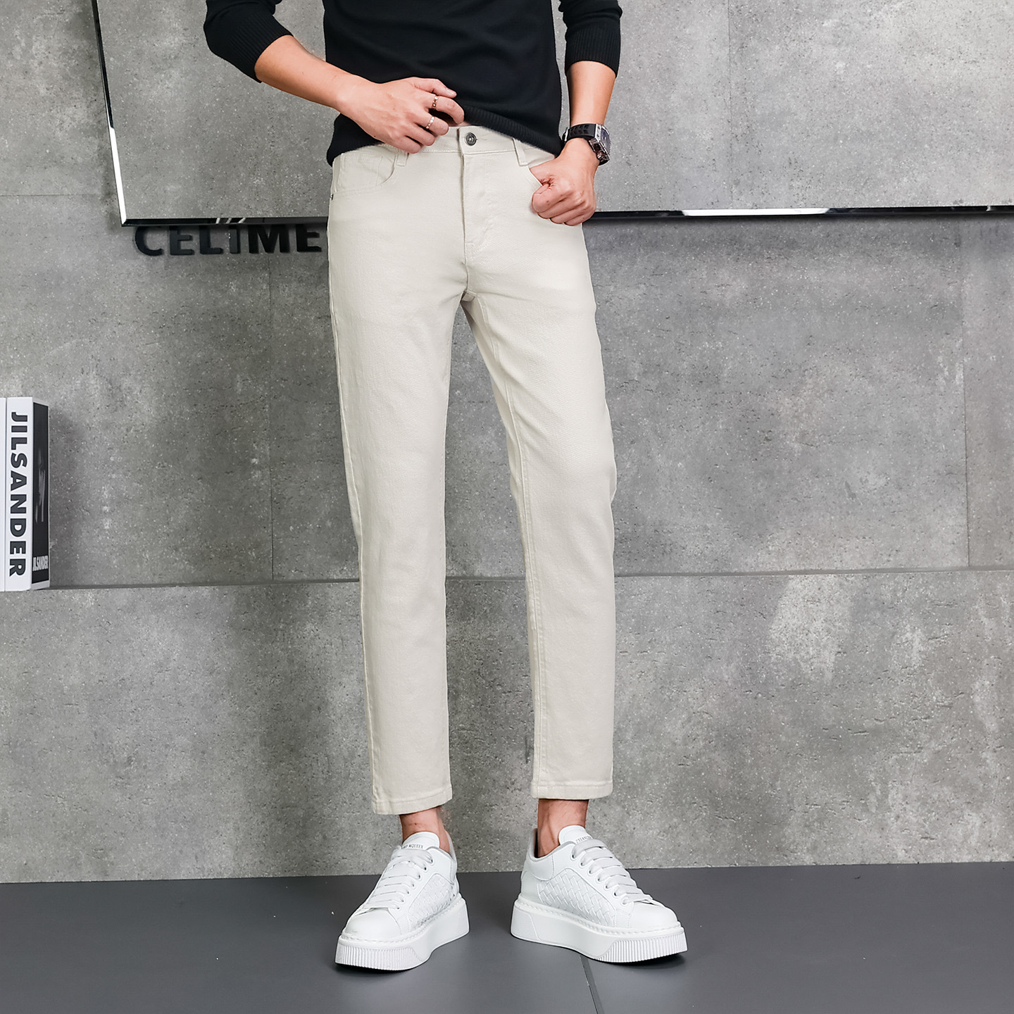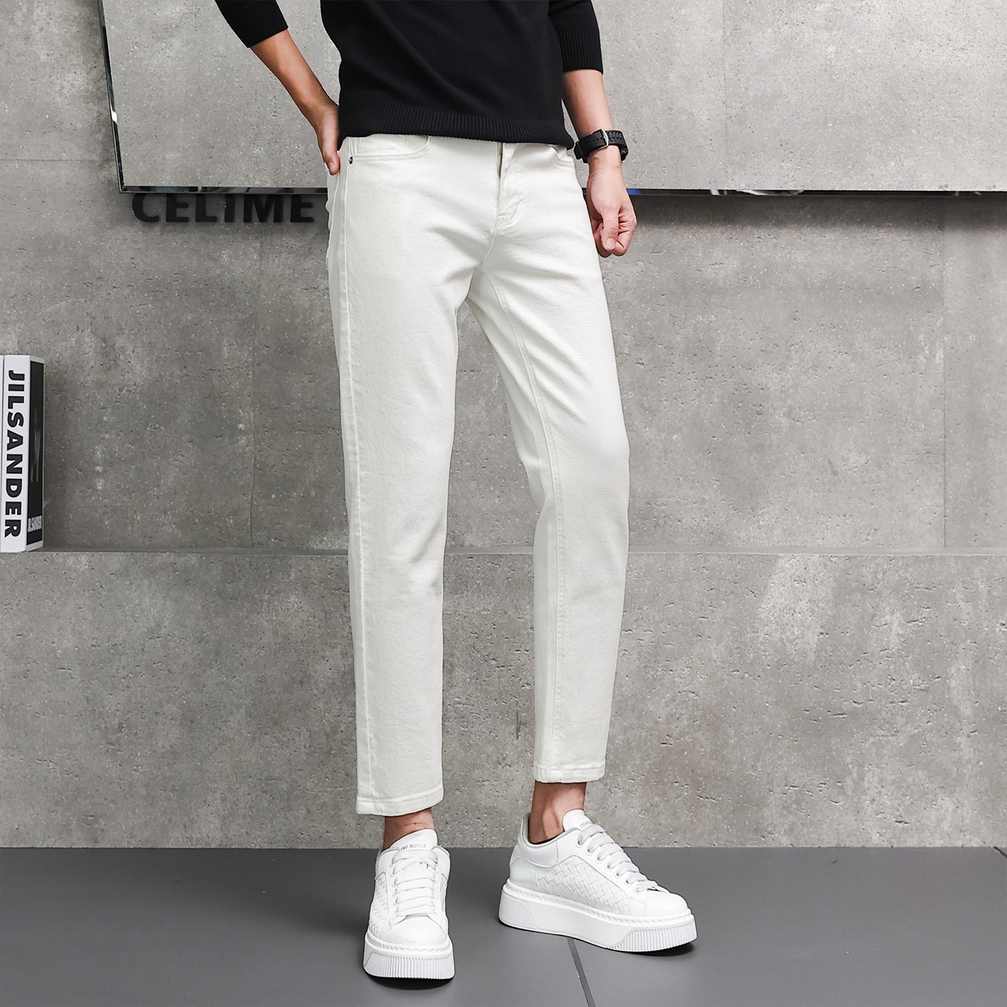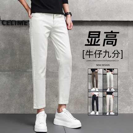 2025新款男士休闲裤修身男生 9分裤商务白色牛仔九分英伦紧身西裤