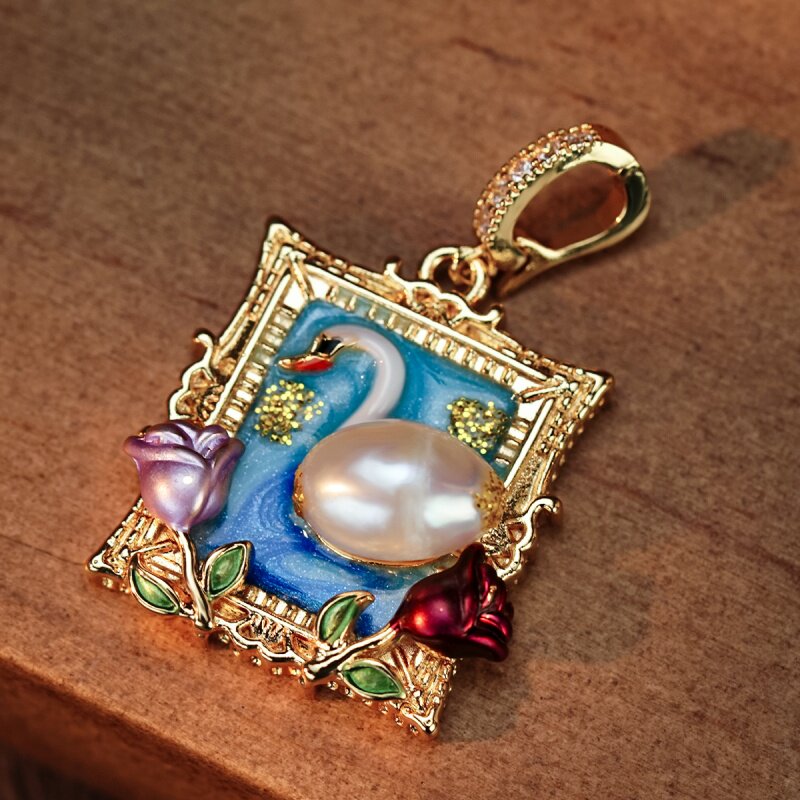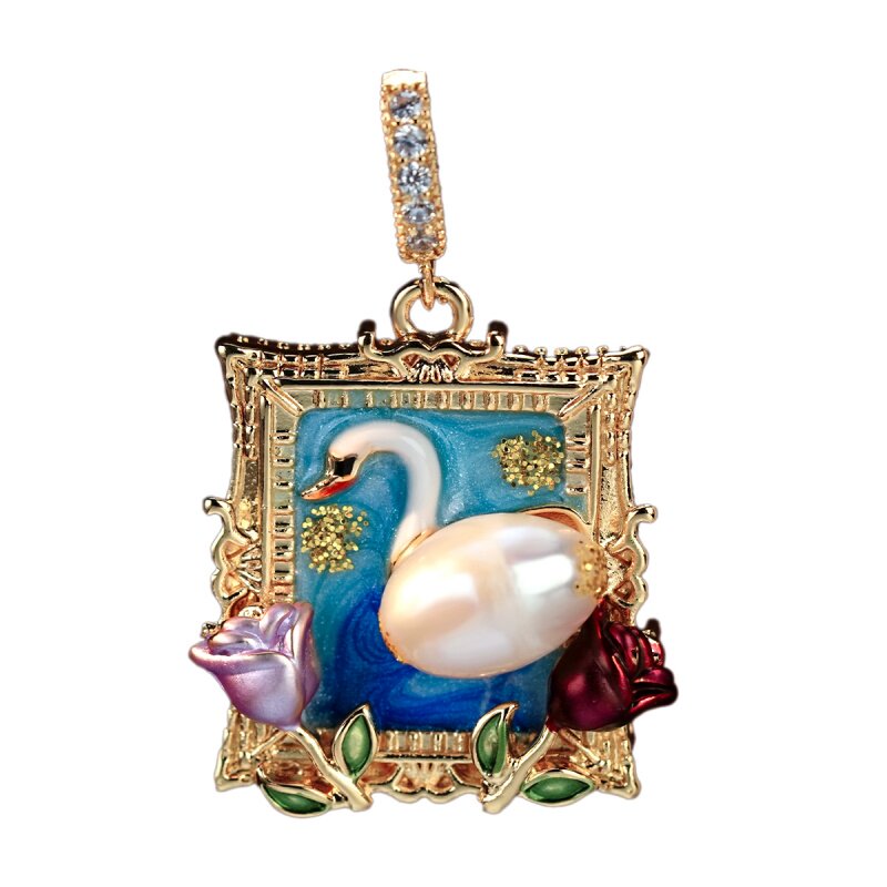 油画风天鹅可拆卸DIY淡水珍珠挂坠项链配件万能扣吊坠国风单坠子