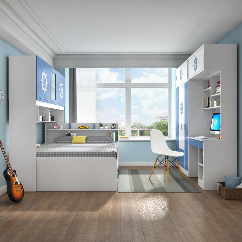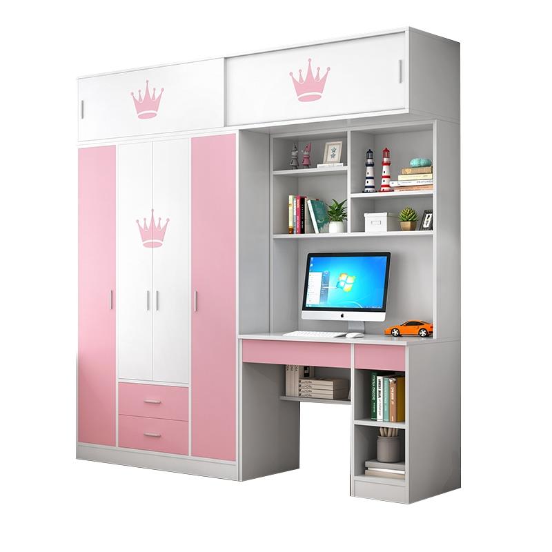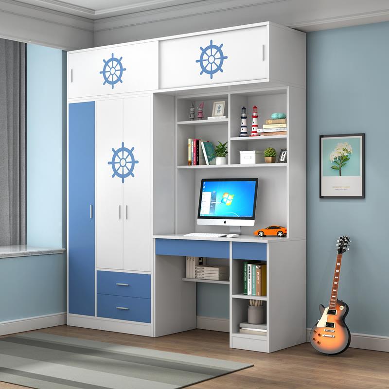 简约实木衣柜书桌一体儿童房现代书柜组合小户型家用卧室衣整体橱
