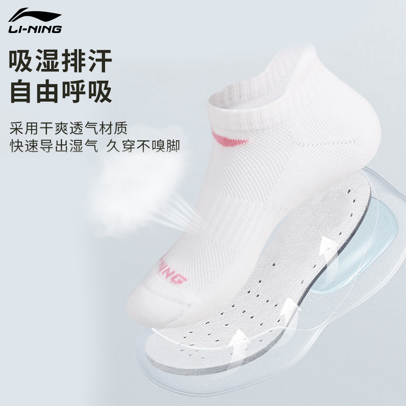 李宁运动袜女吸汗透气中筒新款专业跑步白色袜子防滑羽毛球短袜秋