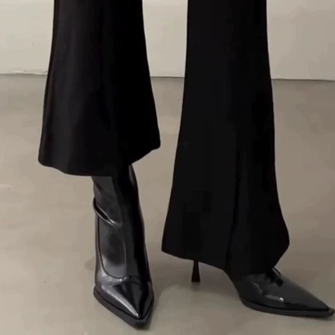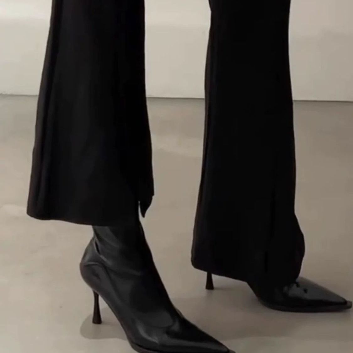 2025新款绝美黑色高跟时装短靴女细跟尖头气质裸靴瘦瘦靴子后拉链