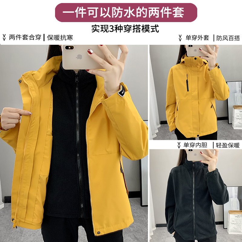 冲锋衣外套女款2025秋冬新款三合一小个子防风防水保暖登山风衣男