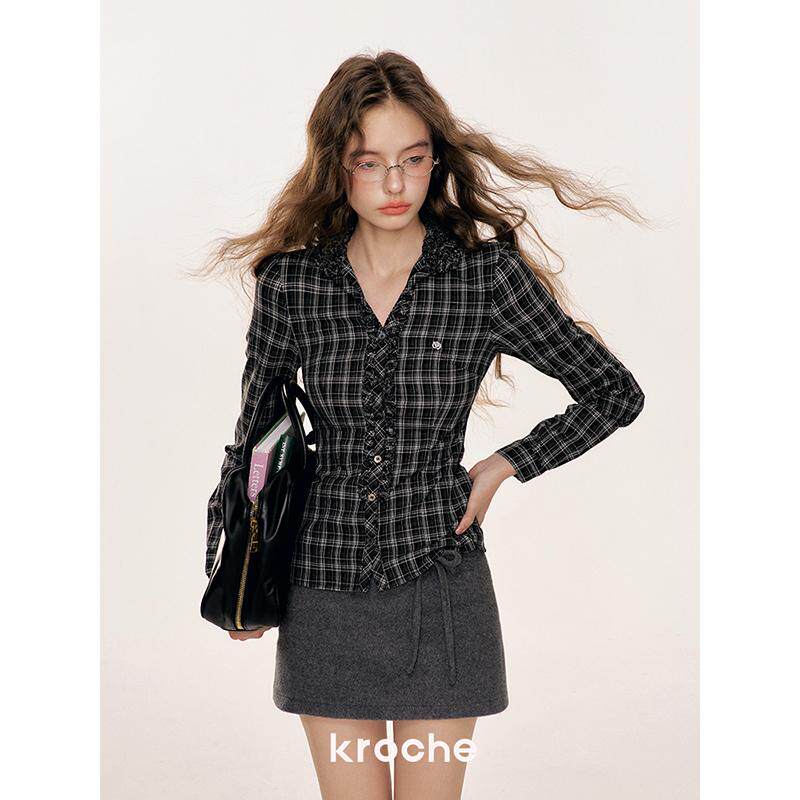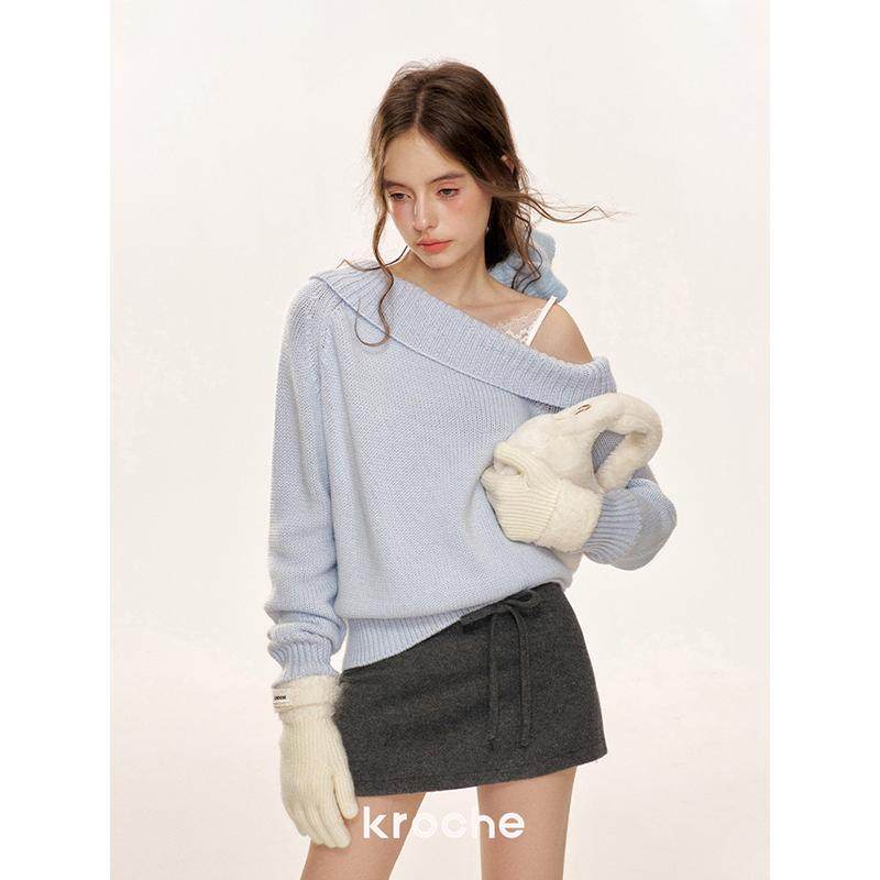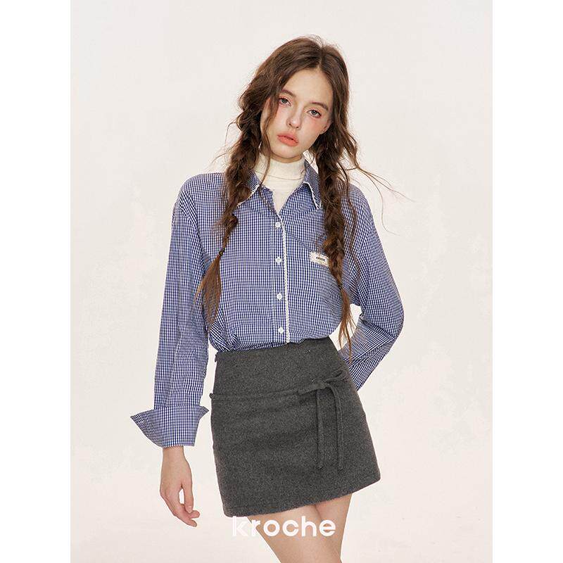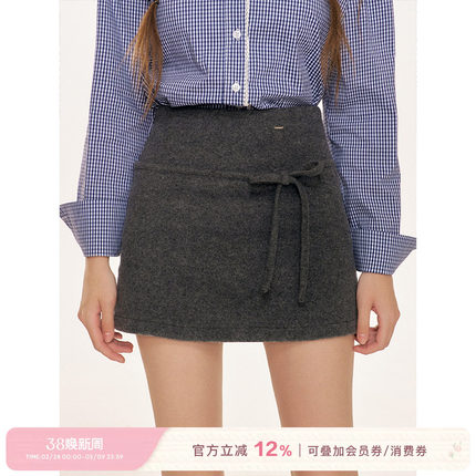 Kroche 50羊毛 bowknot 蝴蝶结设计百搭毛呢短款半身裙