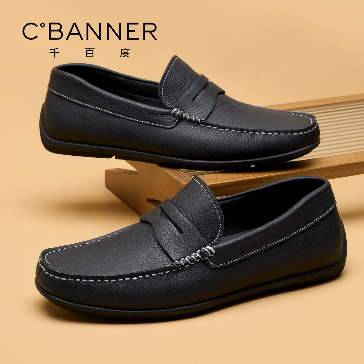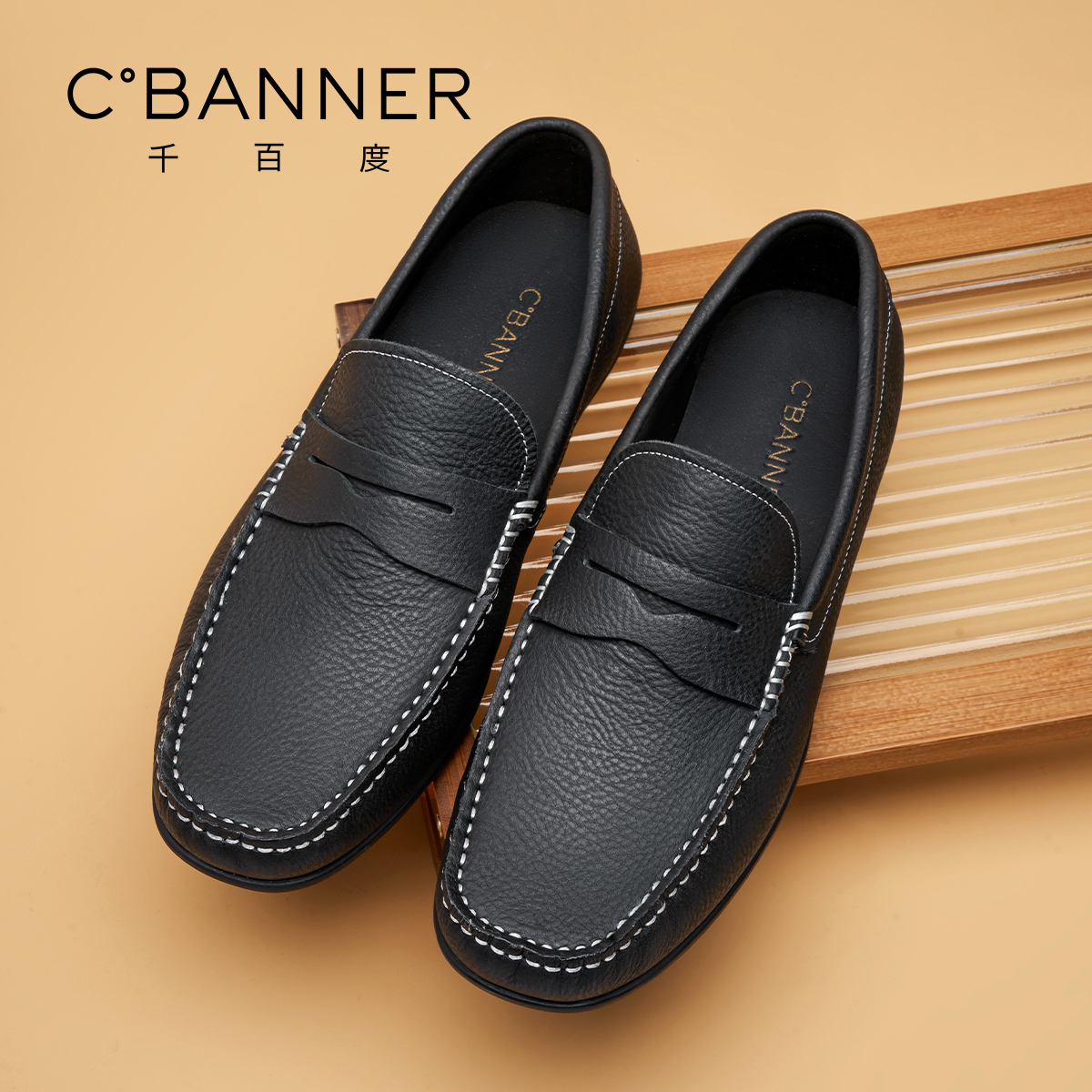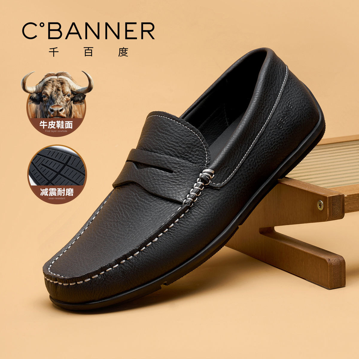 【头层牛皮】千百度一脚蹬乐福豆豆鞋软底耐磨男鞋商务休闲皮鞋