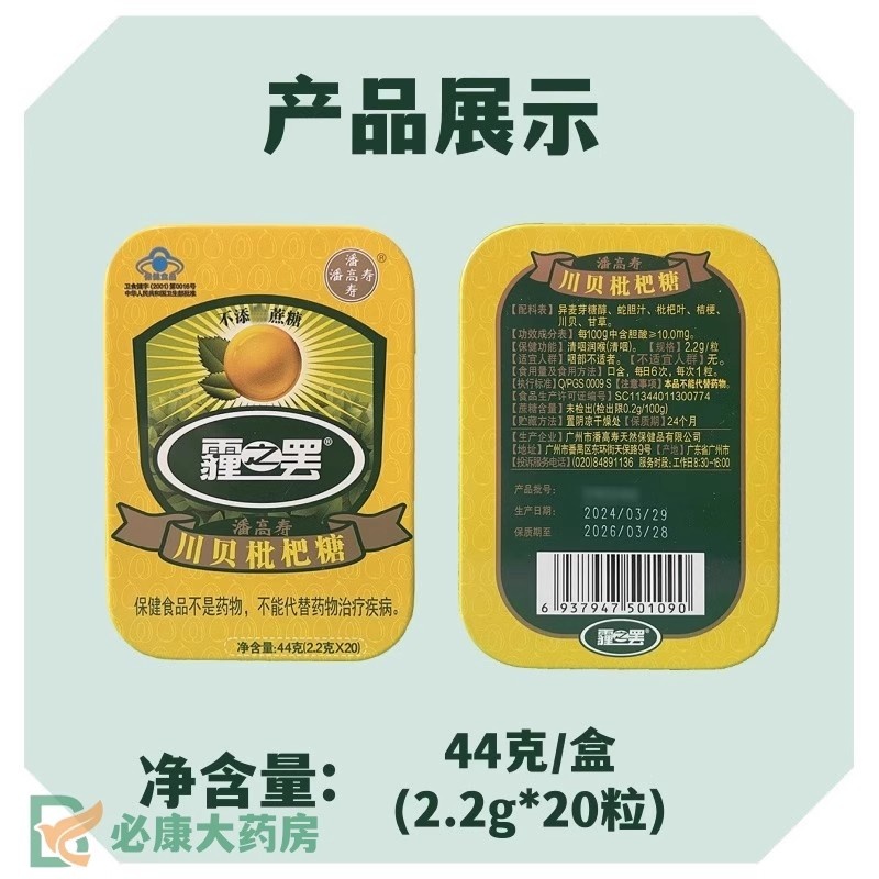 潘高寿 川贝枇杷糖 20粒/盒 含蛇胆汁清咽润喉清凉甘草无糖润喉糖