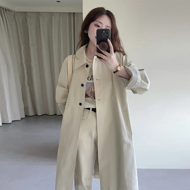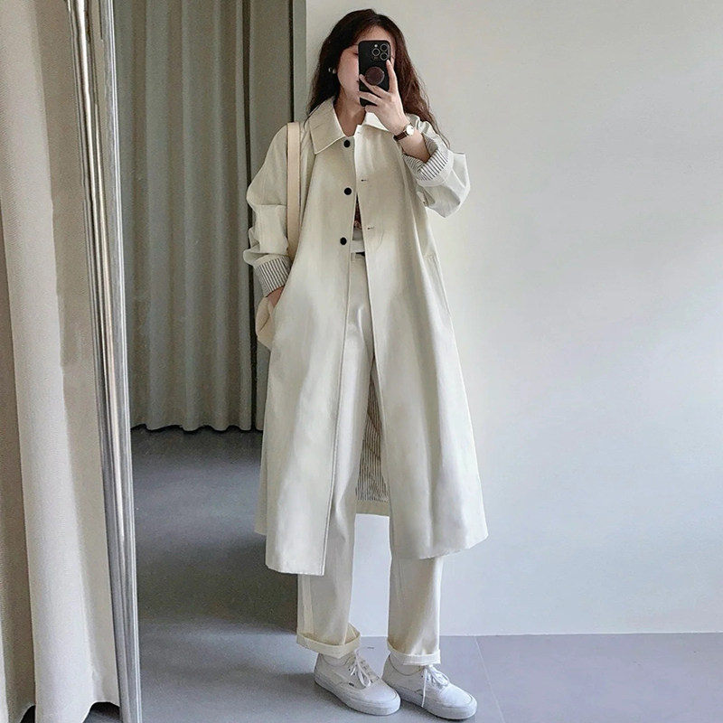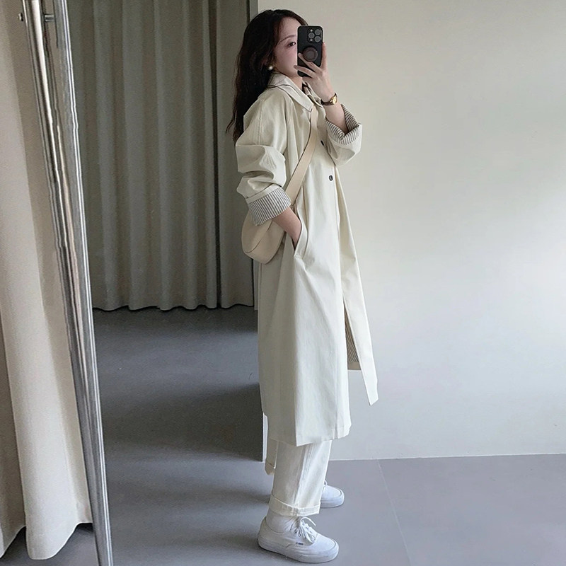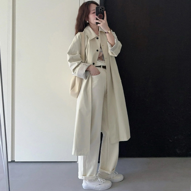 风衣外套女春秋季新款大衣小个子中长款米白色英伦风宽松休闲日系