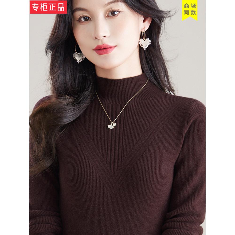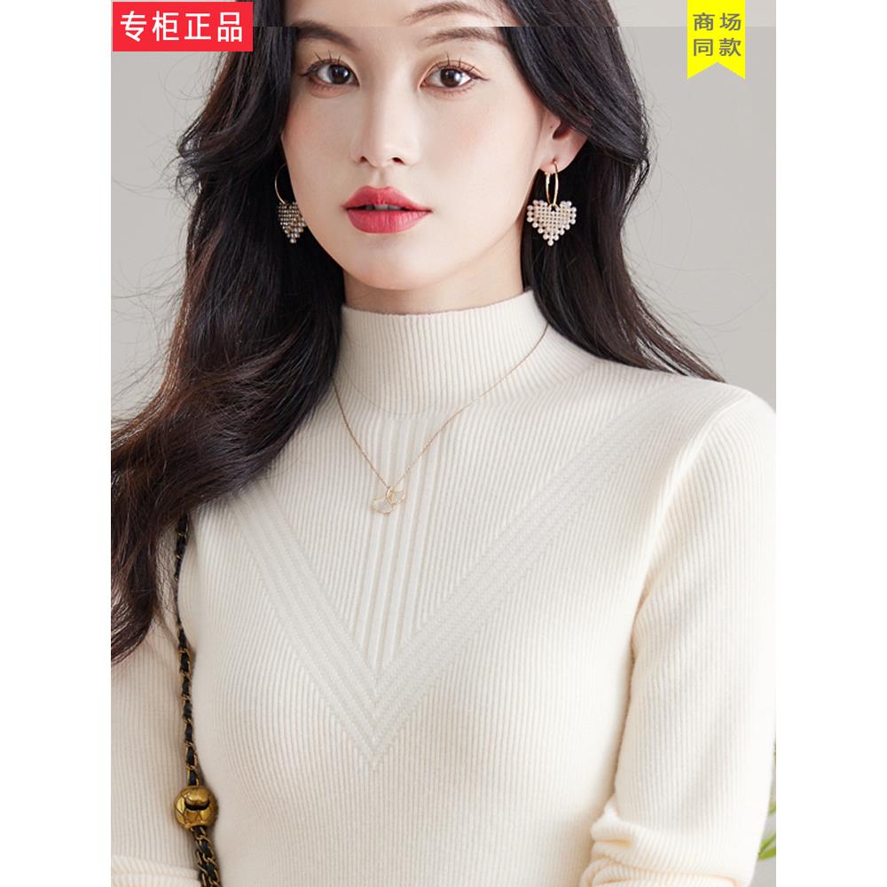 高端女装秋冬新款半高领纯羊毛衫女内搭羊绒衫修身短款毛衣打底衫