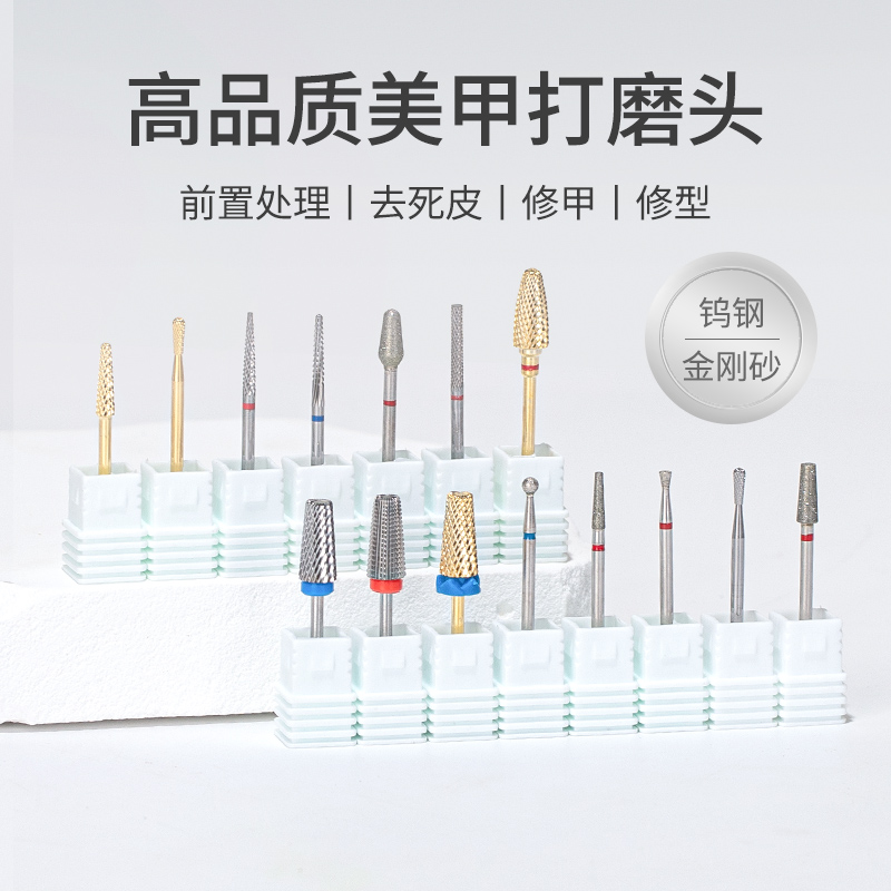 美甲金刚砂打磨头钨钢俄式前置处理开口袋修甲去死皮卸甲工具套装