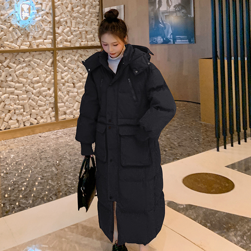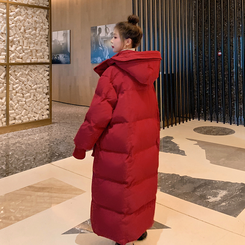 大码女装胖mm红色长款过膝棉衣棉服女秋冬装宽松加棉加厚棉袄外套