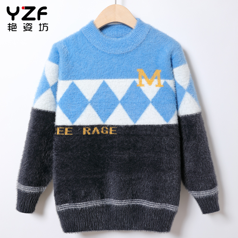 童装新款秋冬装套头儿童水貂绒上衣外套男童毛衣中大童针织衫