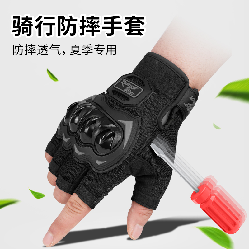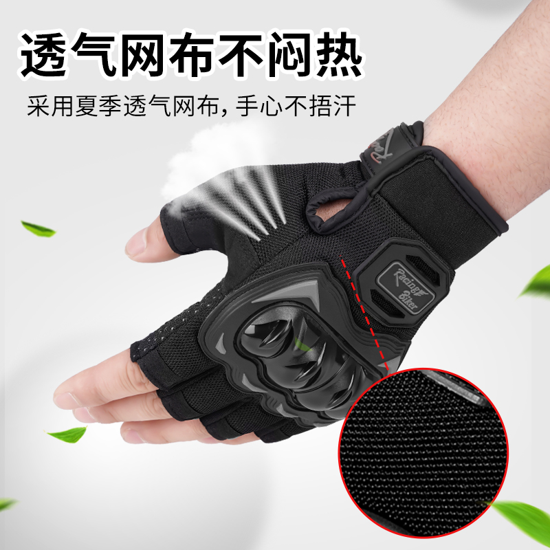 手套男骑行摩托车夏季半指透气骑士机车越野手套防摔四季女可触屏
