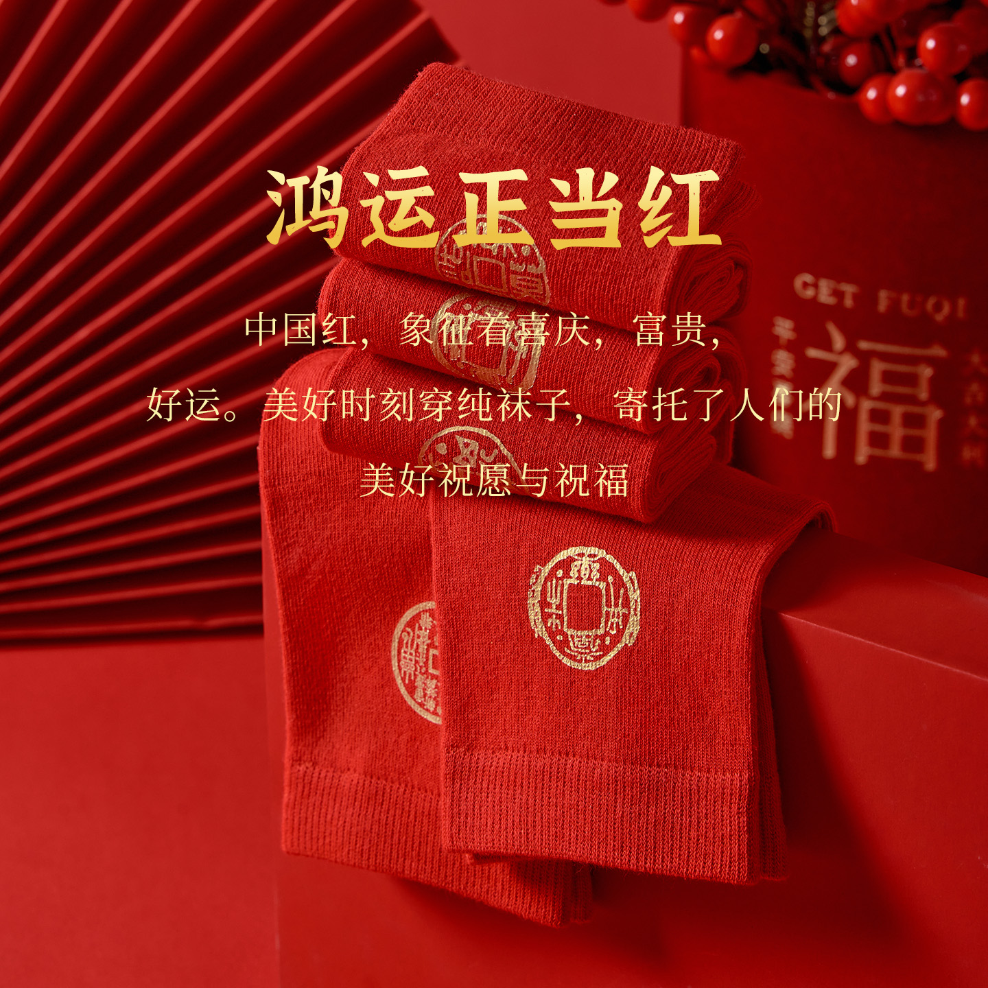 猫人本命年袜子男款中筒袜纯棉全棉防臭女款红色袜子结婚情侣一对