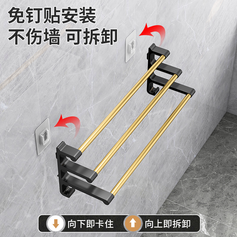 浴室毛巾架免打孔卫生间毛巾杆厕所不锈钢浴巾架卫浴毛巾杆壁挂式